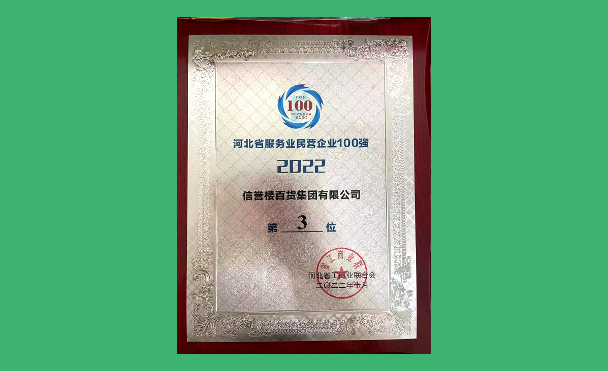 2022河北省服務(wù)業(yè)民營企業(yè)100強第3位