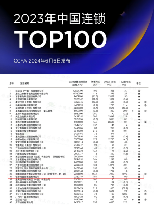 2023年中國連鎖Top100第31位